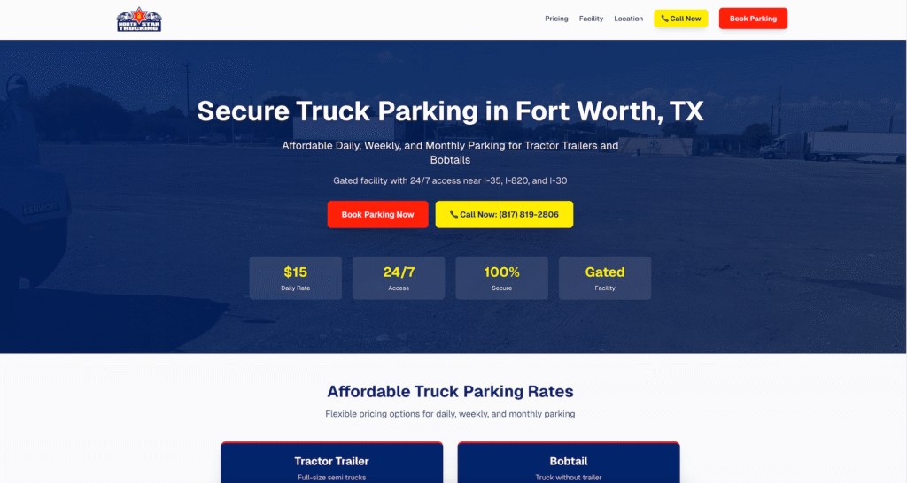 North Star Truck Parking is a Fort Worth option for drivers who want a dedicated place to park a tractor trailer or bobtail on the north side of the city. It is set up with straightforward daily, weekly, and monthly choices so it can work for both short stays and repeat parking.