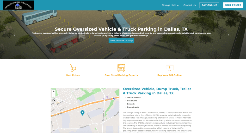 XLSpots offers oversized vehicle and truck parking in Dallas with a setup geared toward drivers who want to reserve a space online instead of searching at the last minute. It is positioned for trucks, trailers, and other commercial vehicles that need a dependable place to park.