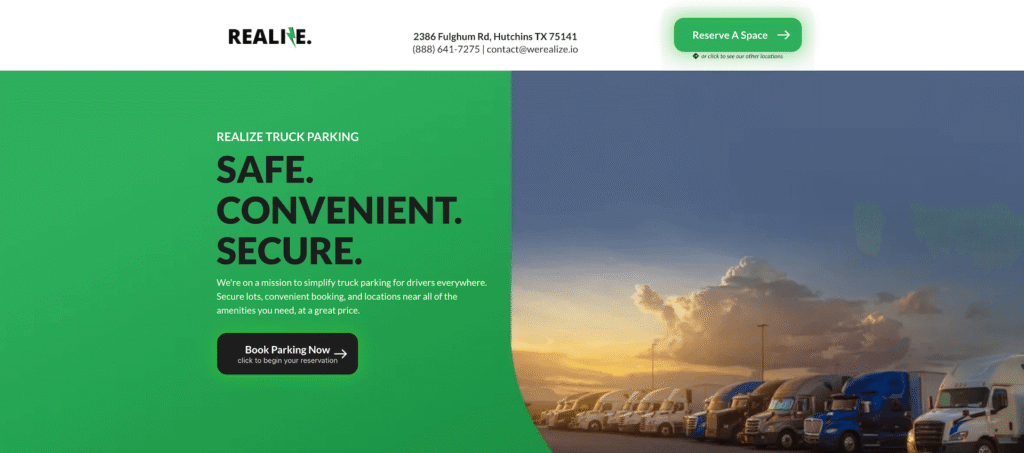 | Realize Truck Parking | Hutchins | Gated access | Secure lots, 24/7 access | Online booking |